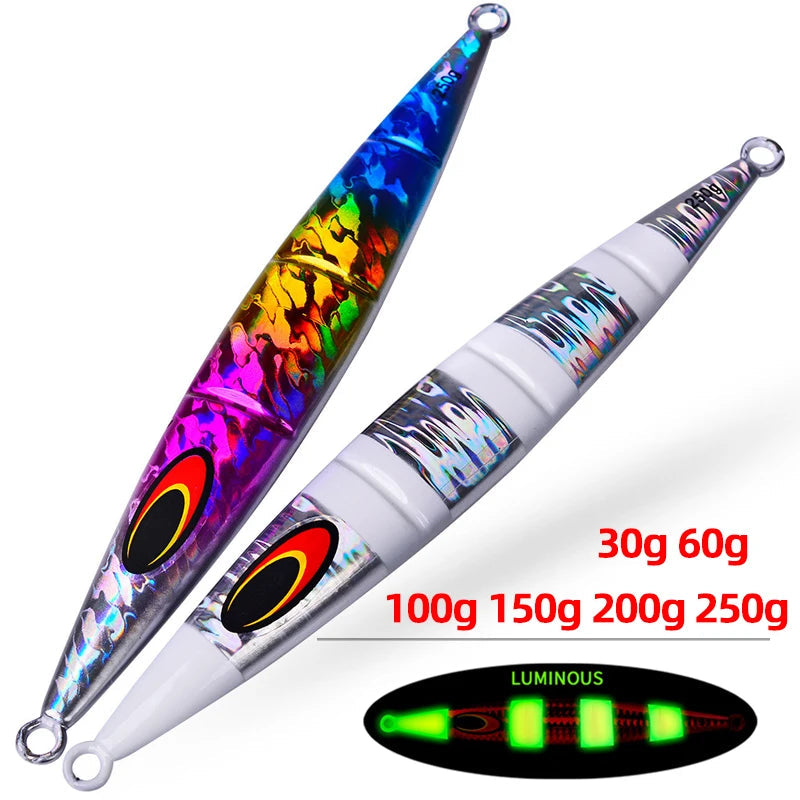 Crafted to mimic the frantic, fluttering motion of a dying baitfish, this long-casting metal jig draws instinct-driven strikes from predators hunting the bottom or cruising the mid-column. From offshore tuna and amberjack to lake monsters and rock-hugging snappers, this lure finds them—then fires them up.
