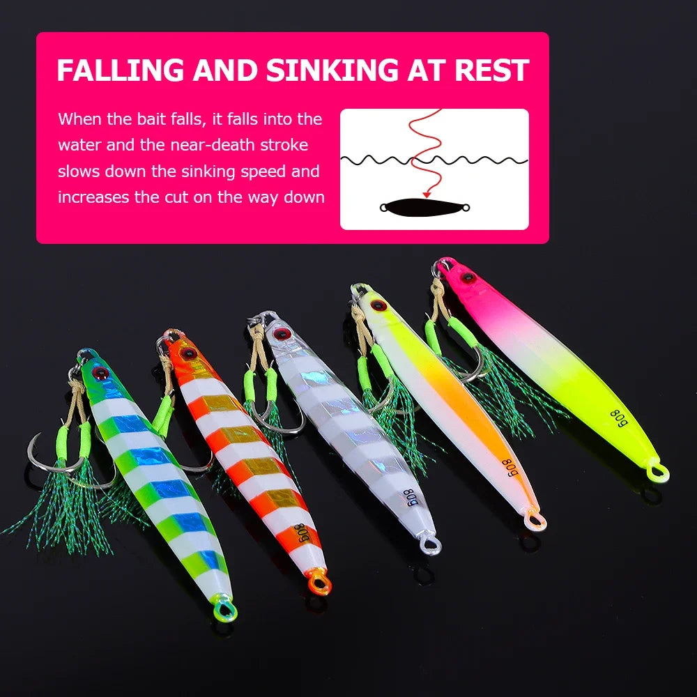 Built for strength and durability, the SuperStrike Jig is ideal for targeting tuna, snapper, grouper, amberjack, and other powerful saltwater species. Available in 30g, 40g, 60g, and 80g sizes, it covers a wide range of fishing situations from shallow waters to offshore depths.