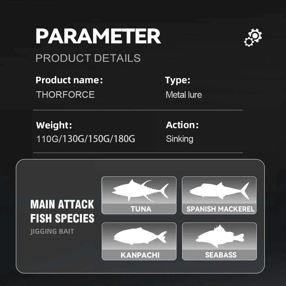 Crafted with a center-balanced profile and hydrodynamic body, the Thorforce creates unpredictable movement on the fall that triggers instinctive strikes from even the most pressured fish. The luminous finish boosts visibility in low-light and deepwater environments, drawing in fish from a distance.