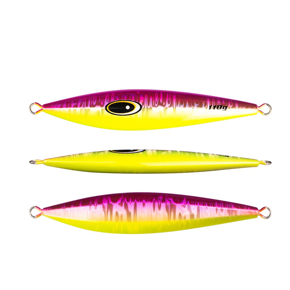 Available in 110g, 130g, 150g, and 180g sizes and three deadly color options — Blue, Pink/White, and Yellow/Pink — the Thorforce Glider is ideal for slow pitch jigging from the boat in medium to strong current conditions.